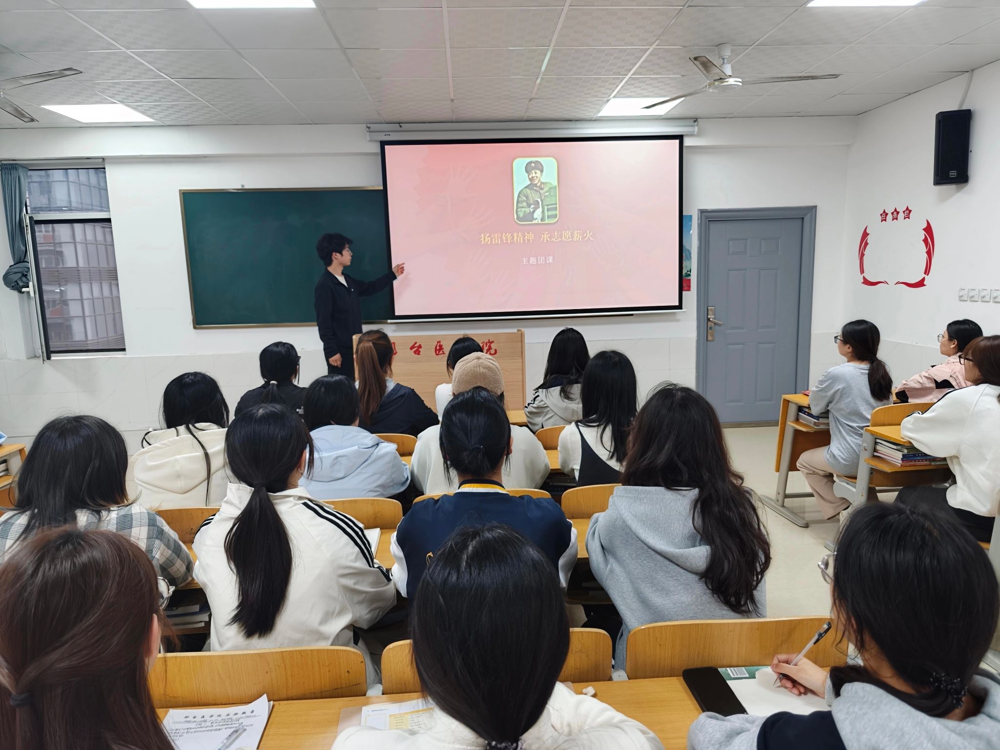 首先,主讲人带领同学们重温雷锋同志的生平事迹,从贫苦童年到扎根岗位、无私奉献的短暂一生,从模范工作者到优秀共产党员的成长历程,让在场团员深刻感受雷锋精神的榜样力量,体会其跨越时代的精神价值。随后,围绕“如何践行雷锋精神”展开交流讨论,团员们踊跃发言、各抒己见,分享自己对雷锋精神的理解和践行想法,现场氛围热烈浓厚。